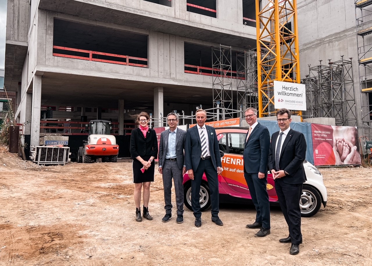 Mit dem in Niedersachsen einmaligen Bauvorhaben werden DIAKOVERE und das Kinder- und Jugendkrankenhaus AUF DER BULT das modernste Mutter-Kind-Zentrum Hannovers schaffen, in dem Geburtshilfe und Neugeborenenmedizin beider Einrichtungen ihre Zusammenarbeit intensivieren werden. Schon jetzt kooperieren beide im Perinatalzentrum Hannover-Kirchrode, eine der renommiertesten Einrichtungen in ganz Norddeutschland. DIAKOVERE legt dort die Geburtsstationen von Henriettenstift und Friederikenstift zusammen, parallel baut das Krankenhaus AUF DER BULT umfangreich um, damit die Neugeborenen-Medizin noch besser aufgestellt ist. Mit dem Neubau von HENRIKE setzen die beiden Partner gemeinsam auch ein Zeichen gegen den Trend, dass immer mehr Geburtshilfen in Deutschland schließen. Die Bauarbeiten gehen gut voran.