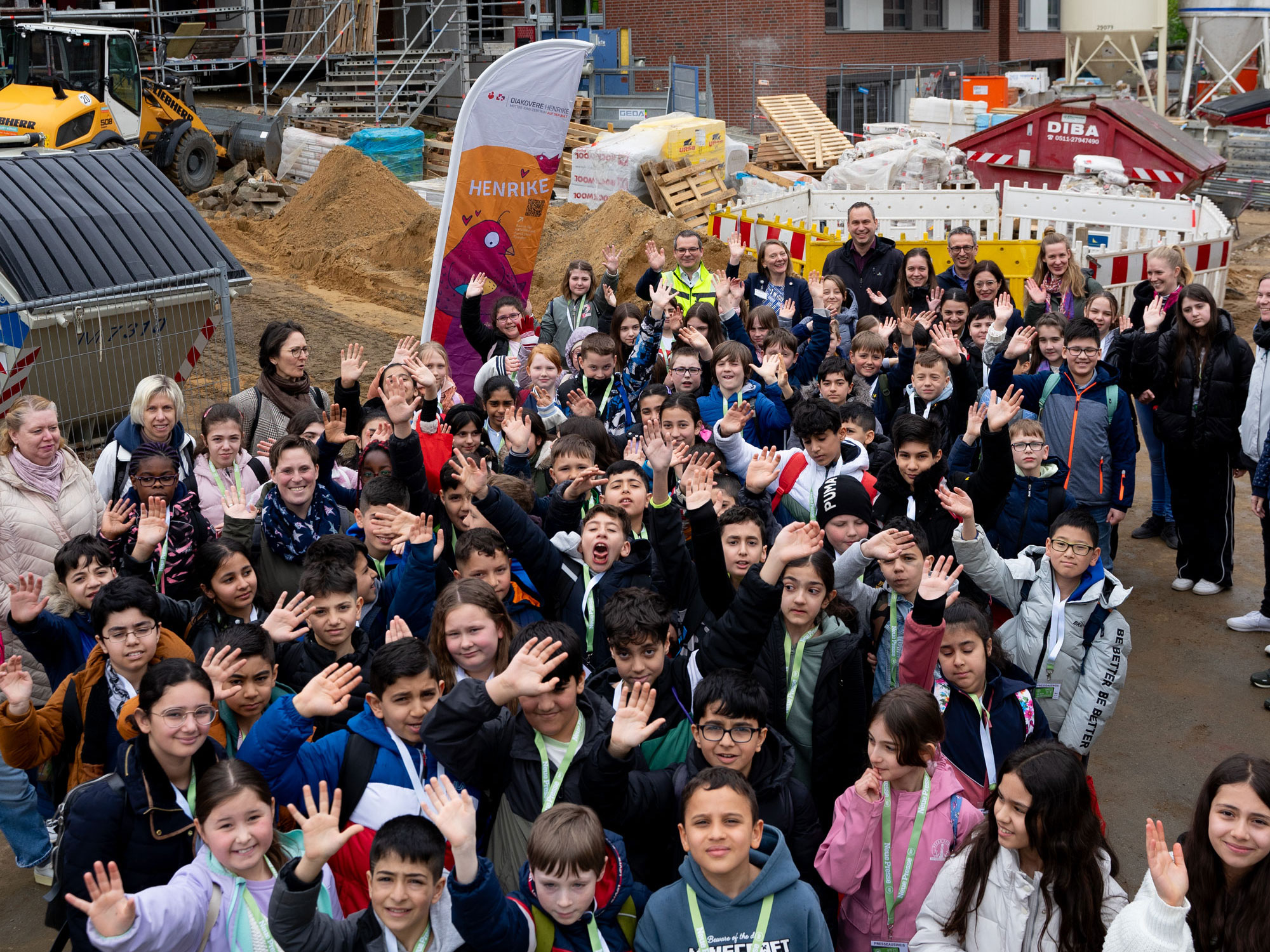 Im Rahmen der Aktion „NP in der Schule“, die DIAKOVERE als Sponsor unterstützt, hatten wir Besuch auf der HENRIKE-Baustelle: Vier vierte Klassen der Grundschule Pestalozzistraße aus Laatzen waren mit ihren Lehrerinnen auf der Bult, um sich anzuschauen, wie sich das Mutter-Kind-Zentrum entwickelt.